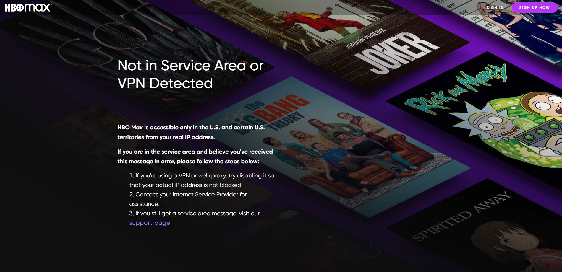If youre using a VPN to hide your IP address youll get an error message. I live in Pakistan and am connected. If you see the error message Not in Service Area or VPN Detected or Sorry HBO Max isnt available in your region yet it means that HBO knows youre using a VPN or your VPN is.